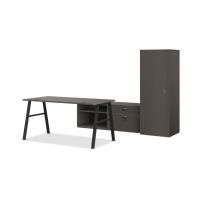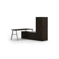 CompareHON Mod Executive Workstation | 84"W x 86"D | Black A-Legs | 2 Storage Credenzas | Wardrobe | Slate Teak Laminate$1,759.161