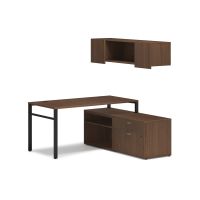 CompareHON Mod Workstation with Wall Mount Storage | 60"W x 60"D | Black U-Legs | 2 Storage Credenzas | Sepia Walnut Laminate$1,381.641
