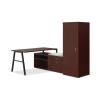 CompareHON Mod small office | 84"W x 60"D | 2 Storage Credenzas | Wardrobe | Black A-Legs | Cool Neutral Credenza Cushion | Traditional Mahogany Laminate$1,863.681