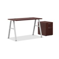 CompareHON Mod Desk with Mobile Storage | 1 Box Drawer / 1 File Drawer | 48"W x 24"D | Silver A-Leg Base | Traditional Mahogany Laminate$567.841